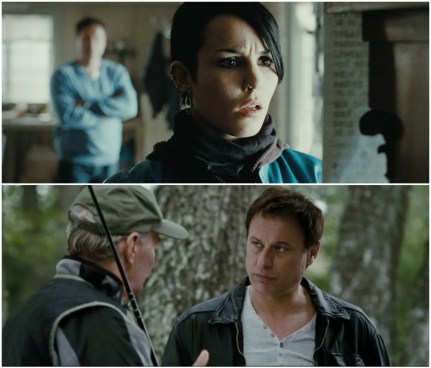 Though both talented actors, Rapace’s performance in the title role (top, right) and Mikael Nyqvist’s performance (top, left and bottom, right) as the investigative reporter, Mikael Blomkvist, in the 2009 movie are melodramatic and disinterested, respectively.