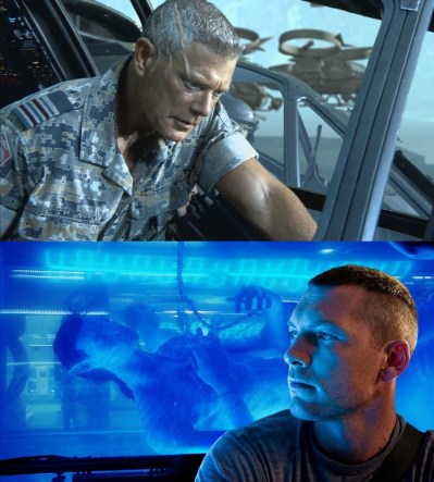 Top: Stephen Lang stars as one of the most annoying, one-dimensional villains in recent film history. Bottom: Sam Worthington is stoic and boring as our lead actor, and you’ll forget him as soon as you leave the theatre.