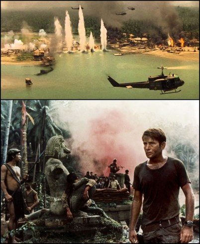 Top: The action set-pieces of Apocalypse Now are stupendous. Bottom: Brando’s lair deep within the Southeast Asian jungle is the creepiest of the film’s many unsettling environments.