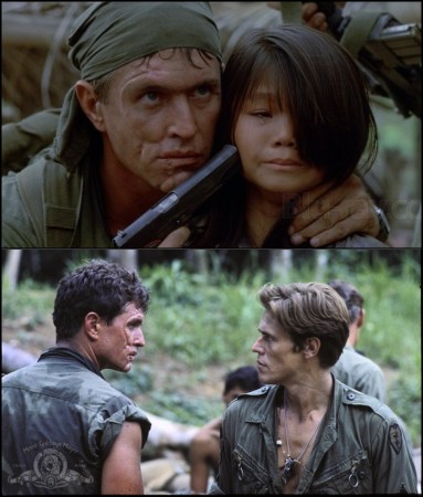Where the film makes most of its mistakes is in its combat scenes. For all the chaos and bloodshed occurring on screen, the camerawork is rather plain and reminiscent of the vanilla flavor of action scenes from Seven Samurai, but not in a good way. It is hard to tell what is going on in the shootouts, and exactly who is shooting whom. This isn’t a grave misstep, because the main premise of the movie is the symbolic moral conflict between the characters within the platoon, not the macroscopic view of the US-NVA/VC battlefield. However, given the frequency of the combat scenes and the impact they have on the main characters, this incoherent action cinematography grows tiresome by the film’s end.