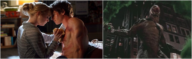 Left: The romance between Garfield and Stone feels forced, obligatory, and by-the-numbers. Right: The Lizard and his doomsday-gas plan are about as cheesy as they come, even for a superhero movie.