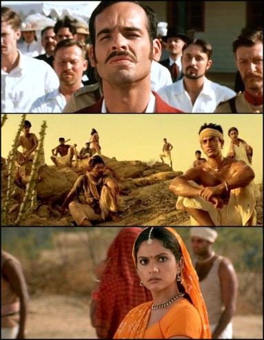 However… visually speaking, Lagaan is dull. The score by Rahman is bland, forgettable, and the biggest single disappointment of the film. Vivek’s character should’ve been cut entirely. Much of the film’s running comic relief misfires when it’s not coming from Aamir. The false love-triangle is a dud.