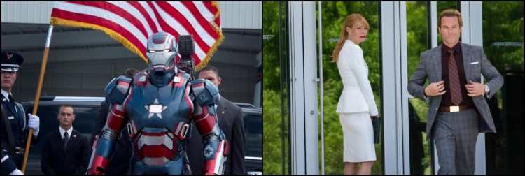 Right: Don Cheadle’s Iron Patriot is little more than filler in this latest Iron Man-adventure. Left: Gwyneth Paltrow and Guy Pearce play significant — yet forgettable — roles as the female lead and primary antagonist, respectively.