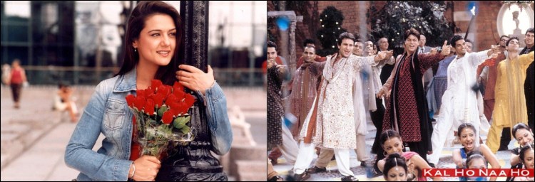 Left: Preity Zinta stars as the female lead of Kal Ho Naa Ho’s principle love triangle. Right: The most energetic song is played near the end, the melodic “Maahi Ve.”