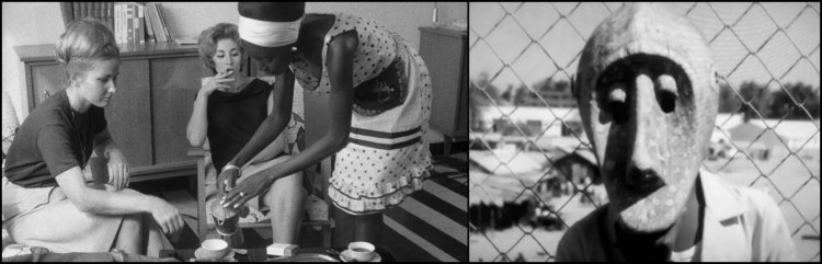 Left: Diouana speaks and understands French just fine, but her snobbish employers treat her like she’s a deaf, dumb, and blind mute, even in front of guests. Right: The final shot of the superb ending.