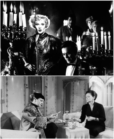Top: Show business dreams are made of this. Bottom: Annemarie Duringer (right) makes for a wicked villain. She manipulates Rosel Zech (top picture, far left) to her devious ends and covers her tracks with ruthless efficiency.
