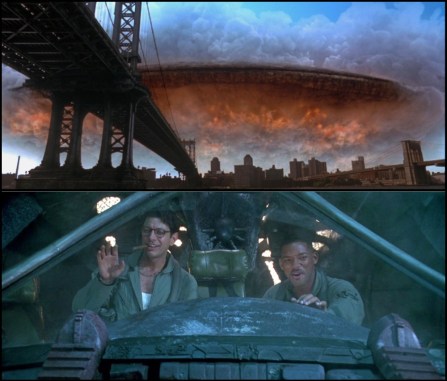 Top: Oooooh, classic imagery! Bottom: Jeff and Will troll the alien mothership before they blow it to hell.