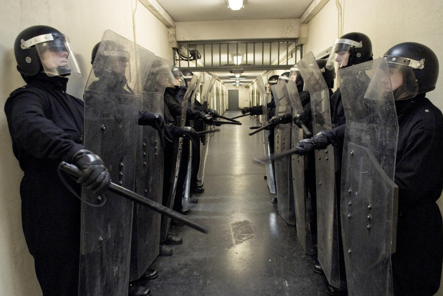 McQueen employs a minimalist cinematographic style that uses no musical soundtrack, long uncut takes with immobile cameras, and emphasizes sound FX over spoken dialogue. There are few spoken conversations in the entire film, save for a wickedly impressive discussion between Fassbender and fellow Irishman Liam Cunningham, which features a 17-minute unbroken take. Other than that lone notable exception, Hunger is an almost silent film in terms of the spoken word and musical accompaniment. I don’t think I’ve ever seen a movie more focused on audio FX than this one, where the scrubbing sounds of a janitor mopping up puddles of piss down a prison ward, and the terrifying banging of batons by riot guards speak volumes more than any dialogue could in their place.