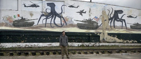The biggest problem with Monsters is that, despite the nuanced touches that Edwards places around his sets and the admirable lengths the design team goes to convince you the setting is real (the many shots of graffiti depicting the quarantined Mexico are cool), much of the spell of science-fiction wonder and suspension of disbelief is constantly shattered by heavy-handed symbolism and dialogue that is bursting with not-so-subtle foreshadowing. Monsters is filmed with the scope and guerrilla-style filmmaking realism of an indie picture, but its thematic content and the clunky lines its characters spout feel like the laziest of Hollywood cliches. Apparently the dialogue was improvised by the actors with only loose guidelines provided by Edwards’ screenplay, so it’s not surprising the conversations are lacking. There’s an abrupt tonal shift whenever the characters transition from discussing basic survival topics to the preachy message that is thinly disguised by the story’s extraterrestrial allegories and concrete wall plot-devices.