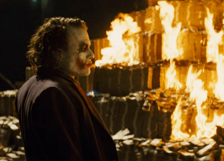 Alfred Pennyworth: “Well, because he thought it was good sport, because some men aren’t looking for anything logical, like money. They can’t be bought, bullied, reasoned, or negotiated with. Some men just want to watch the world burn.”