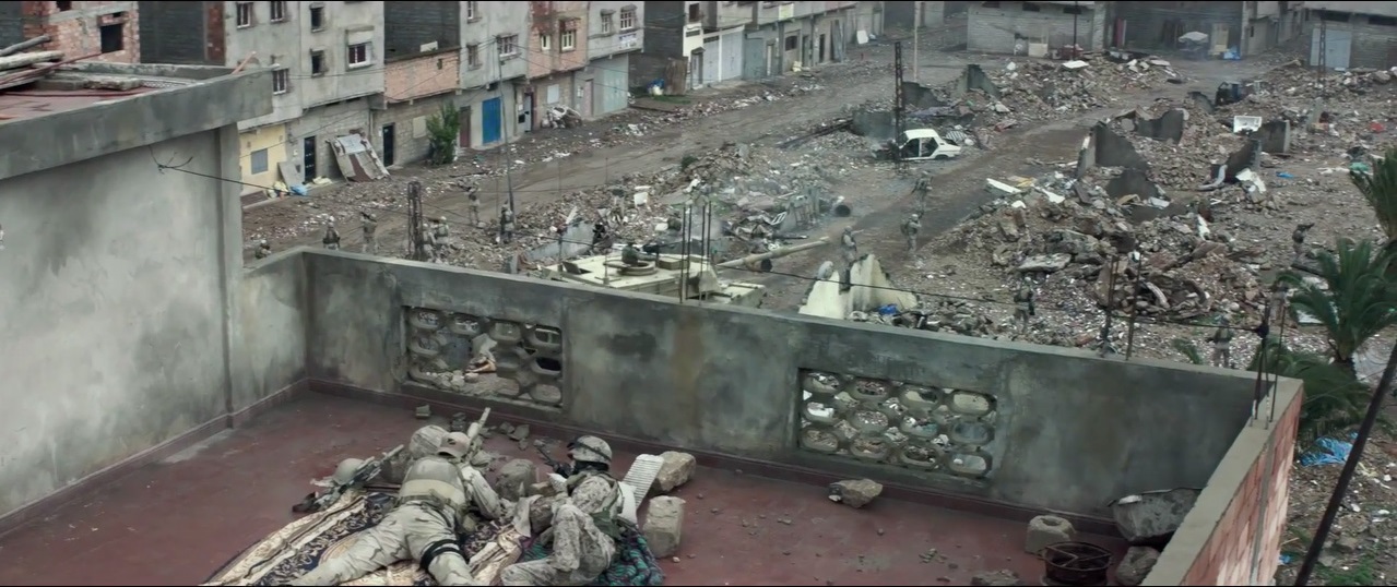 Bradley Cooper (bottom left) surveys an Iraqi warzone recreated in magnificent detail for the film’s first sniper mission.
