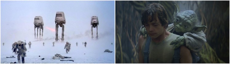 Left: The Empire is back with a vengeance. Run, you rebel scum! Right: Luke: Vader… Is the dark side stronger? Yoda: No, no, no. Quicker, easier, more seductive.