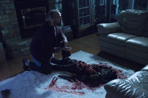 Peter Stormare investigates the remains of a child devoured by Andy Powers’ demonically possessed protagonist.