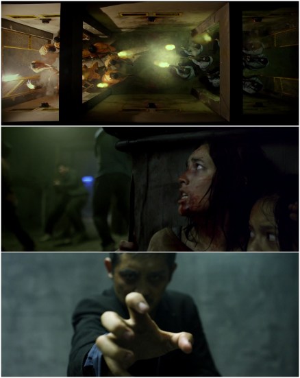 Top: Rebellious inmates (left) and prison guards (right) shoot it out in the film’s memorable opener. Middle: Chelsea Islan (center right) braces for attack while Iko Uwais (center left) engages with opponents. Note the use of foreground and background focus. Bottom: Antagonist Sunny Pang takes a stand against his former protege.