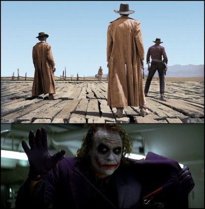 Top: Once Upon a Time in the West (1968) Bottom: Ah, tah tah tah… let’s not blow this superhero movie crime drama out of proportion.