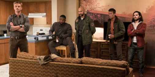 From left to right: Boyd Holbrook, Trevante Rhodes, Keegan-Michael Key, Thomas Jane, and Agusto Aguilera. All have great chemistry, but memorable characters? Not so much…