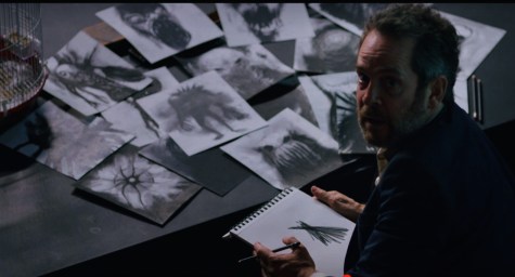 The closest we come to seeing Bird Box’s monsters are the cryptic, ominous drawings of Tom Hollander.
