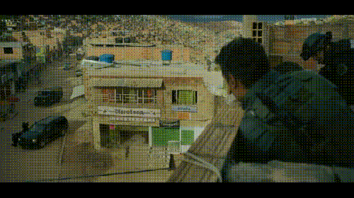 Leads Oscar Isaac (left) and Ben Affleck (right) scope out a drug lord’s estate along the border of Brazil and Colombia toward the end of the movie’s first act.