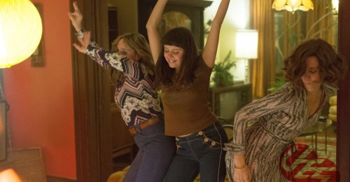 Lead Bel Powley (center) dances with her character’s troubled mother, Kristen Wiig (right), and family friend, Madeleine Waters (left), in one of the movie’s few upbeat sequences.