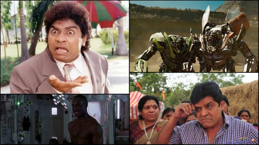 Nothing irritates me more than insufferable comic relief side characters, e.g. Johnny Lever (Top Left) in Bollywood, Ali Basha (Bottom Right) in South Indian Cinema, Skid & Mudflap (Top Left in Transformers [2009]) and Richard T. Jones (Bottom Left in Event Horizon [1997]) in Hollywood.