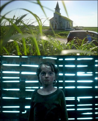 With regards to Natali’s visual storytelling, his choice of location-photography works great for his horror premise, while cinematographer Craig Wrobleski achieves the difficult task of clarifying character geography and movement within monotonous scenery. Lighting setups during both day and night imply most of the outdoor principal photography used natural lighting, and if not that may be even more impressive. Several long-take dollies are extended through hidden cuts between real and computer generated blades of grass, which tightens pacing and helps the viewer follow the time-loop. The film looks great, top to bottom, and its use of otherwise plain settings (e.g. an abandoned church, a rural highway, a big field of grass, etc.) to create a supernatural maze that feels both tangible and threatening is memorable.