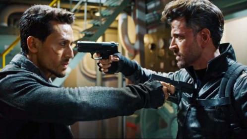 Tiger Shroff (left) and Hrithik Roshan (right) have fun in one of the film’s enjoyable yet superfluous musical numbers.