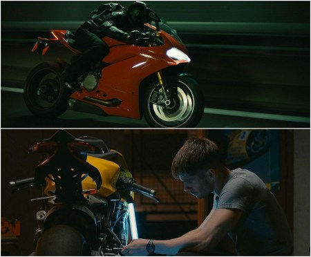 Top: Francois Civil’s protagonist desires to make a living through his motorcycle skills… and ends up getting more than he bargained for. Bottom: Civil finds a middle-ground of sorts between drug-running for organized crime and abandoning his racing career altogether.