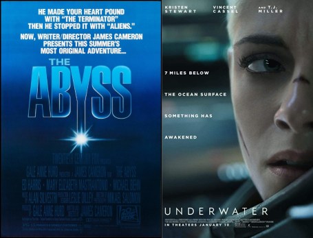When I was a kid, one of the few activities at which I excelled was competitive swimming. As such, I’m drawn to stories about water and characters defined by life around it, despite growing up in the Midwestern United States well over a hundred miles from the nearest major freshwater bodies (e.g. The Great Lakes) and hundreds of miles from the nearest ocean. Two movies, one recent and one now considered a cult classic, exemplify filmmakers’ similar interest in the power of aquatic environments as a storytelling device: James Cameron’s 1989 Abyss and William Eubank’s Underwater, the latter released this year prior to the COVID-19 outbreak. Both films pay obvious homage to science-fiction thrillers of the past, including Alien (1979; Cameron himself directed that film’s first sequel, Aliens [1986]), and 2001: A Space Odyssey (1968), and both films’ diegetic style and primary character development are defined by their marine environments.