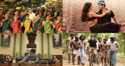 Though Bharat Ane Nenu and Srimanthudu (top left and right, respectively) pay lip service to movie musical formula, their heart is on political commentary and action clichés (bottom left and right, respectively).