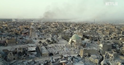 Aside from brief drone footage of the real-life ruins of Mosul, once Iraq’s second largest city, the film transitions to handheld camerawork based in Marrakesh for the bulk of its run-time.