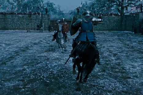 Though their faceoff starts with a joust, Damon and Driver soon force each other to the ground, engaging in a brutal armored melee that lasts almost three minutes without feeling overchoreographed.