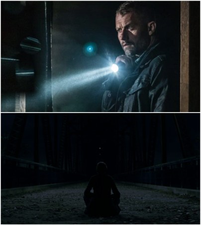 In terms of visuals, the film is just as accomplished as its script, hinting at great things in David Prior’s future if he ever directs another feature where he’s in charge of the final cut. The production values and set-design of the prologue in particular are impressive, with extensive weather FX, perfect high and low-key lighting arrangements, and an immaculate sense of dread that builds mood while also showing — not telling — expository information critical to the larger plot. In the primary storyline set in the Midwestern US, darker nighttime cinematography dominates both outdoor rural backdrops and grimy, rustic urban environments. The film’s standout sequence may be Dale’s prolonged investigation of a supposedly abandoned campsite, which extends from day to night and ends with a terrific foot chase.