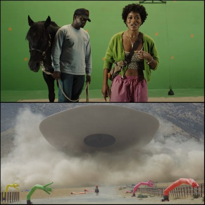Top: Though I find her character annoying, Palmer (right) and Kaluuya (left) are convincing as sister and brother. Bottom: Whoa! There goes an unidentified flying object aerial phenomenon in Nope’s final set-piece.