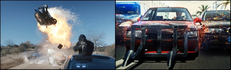 Fantastic stuntwork (left) and fearsome bullbars (right) abound in Lost Bullet.