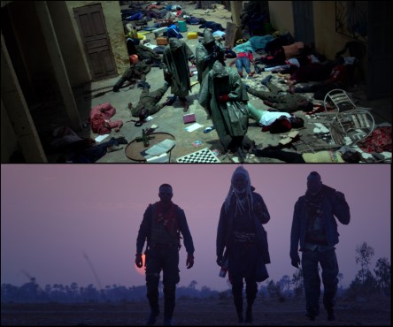 The premise of Saloum is as follows: Three hired guns known as Bangui’s Hyenas (Yann Gael’s lead with Roger Sallah and Mentor Ba costarring) extract a Mexican drug lord out of Guinea-Bissau during that nation’s 2003 coup d’état, but are forced to land in the titular setting when their aircraft’s fuel tank is sabotaged by parties unknown. Our main characters thereafter seek refuge in a nearby inn where it becomes clear that Gael has additional plans beyond their mercenary work. What works about this movie is how effective its lead characterization is, Gael’s performance in particular, how well his arc dovetails with the movie’s thematic development and transition between different genres. Saloum’s flashbacks are brisk and well paced throughout the greater story, informing Gael’s motivation at different plot-points and helping us to understand his emotional status. He also has good chemistry with his two primary costars and the rest of the supporting cast.