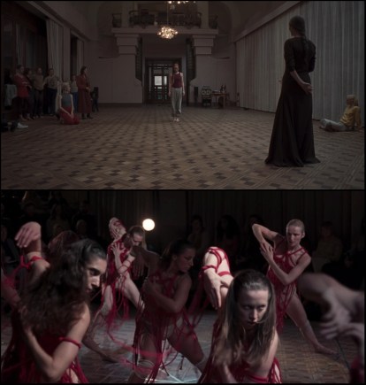 At the same time, Kajganich’s most notable contribution to the 2018 remake may be his conception of dance as the medium through which the film’s witch antagonists conduct spells, which in hindsight makes the 1977 movie’s complete disinterest in dance choreography feel like a major oversight. The musical rhythm, ultrasharp editing, and tonal power of its dance sequences feel on par with a dynamite Hindi or South Indian production, despite the remake’s use of dull, muted winter colors to fit its German Autumn setting. The diversity of dance choreography, how the dances visually explore the characters, and their critical function in progressing the story from Point A to B puts so many melodramatic, showy, loud, annoying, fruity, verbose contemporary Hollywood musicals (e.g. Moulin Rouge! [2001], Chicago [2002], Mamma Mia! [2008, 2018], In the Heights [2021]) to shame.