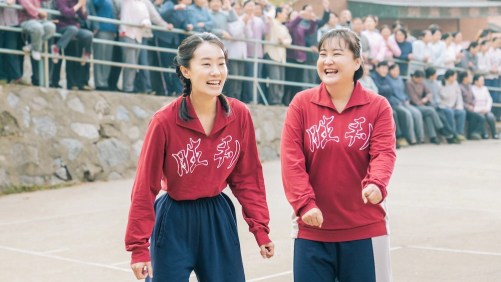 Jia Ling (right) reconnects with her mom’s younger self, Zhang Xiaofei (left) in a 1980s local volleyball tournament.