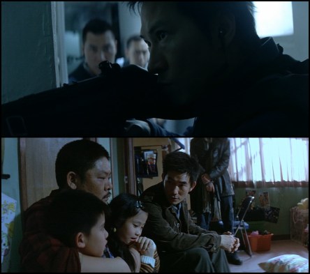 Top: Nick Cheung leads his team into the tight confines of Breaking News’ chief location. Bottom: Lead and antagonist Richie Jen hides inside an unwilling tenant’s apartment.