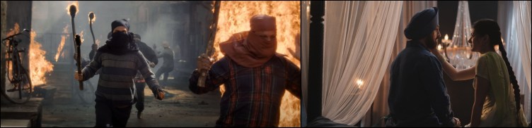 Zafar eschews flashy camerawork in favor of tight editing and broad scene coverage so that the audience knows where everyone is, good guys and bad, within each tense set-piece without letting any one scene drag. These attributes are crucial to the tension in Acts Two and Three, where Dosanjh and Ayyub attempt to smuggle dozens of their Sikh neighbors out of Delhi to Mohali (the state of Punjab is where the vast majority of Sikhs are concentrated) in a lorry and have to navigate everything from roving mobs to hostile traffic stops. The longer the film runs, the more suspenseful its set-pieces grow until a satisfying conclusion that takes advantage of the local scenery’s creative blocking.