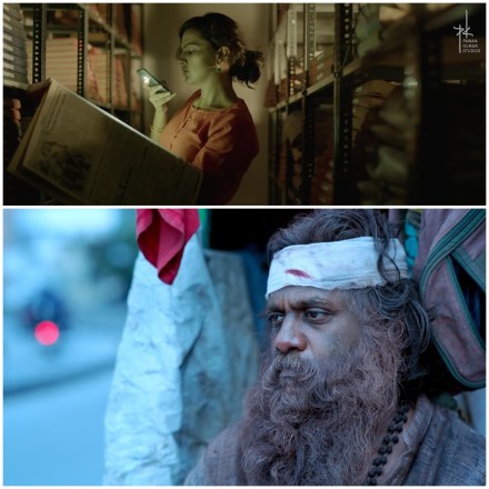 Top: Lead Shraddha Srinath investigates an inexplicable series of murders of civilians linked only by their unethical disregard for traffic laws. Bottom: Kennedi Gopalan portrays a homeless vagrant whom Srinath pays to record motorists who take illegal U-turns off a local freeway in Bangalore.