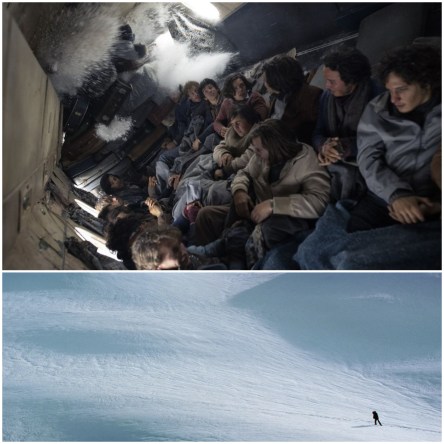 Top: The remaining survivors huddle inside the wreckage of their aircraft at night before a massive winter avalanche breaches their shelter. Bottom: One survivor heads back to their crash site after an infected wound slows their expedition to find help in the spring thaw.