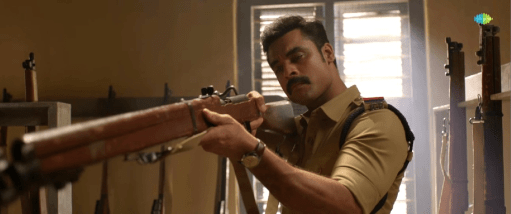 Lead Tovino Thomas of Anweshippin Kandethum tests a British colonial era rifle in between his detective duties.