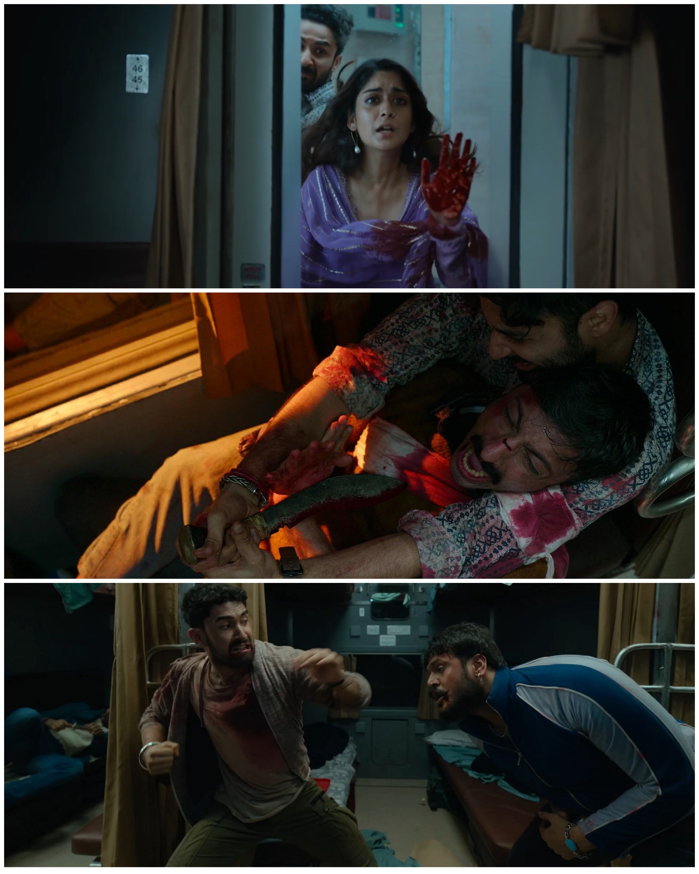 This “Die Hard (1988) on a train”-premise sets up the screenplay for success, but Bhat’s acting direction, command of Rafey Mehmood’s action cinematography, and effective set-design make Kill a winner of an action film. Bhat writes all the aforementioned performers as three-dimensional characters and develops them across all three acts despite the movie’s modest runtime (105 minutes); even the main villain, Raghav Juyal (a dancer by trade), is treated with respect and gives arguably the best performance of the entire cast. In terms of action choreography and stunts, Mehood and Bhat take advantage of the tight, confined geography of their train car sets, embracing the realistic fisticuffs and close-quarters combat natural to any indoor melee brawl. Even the train sets, created almost entirely in studio, are wholly immersive and differentiate Kill’s tone, pace, and ambiance from many similar hardcore action films from other industries.