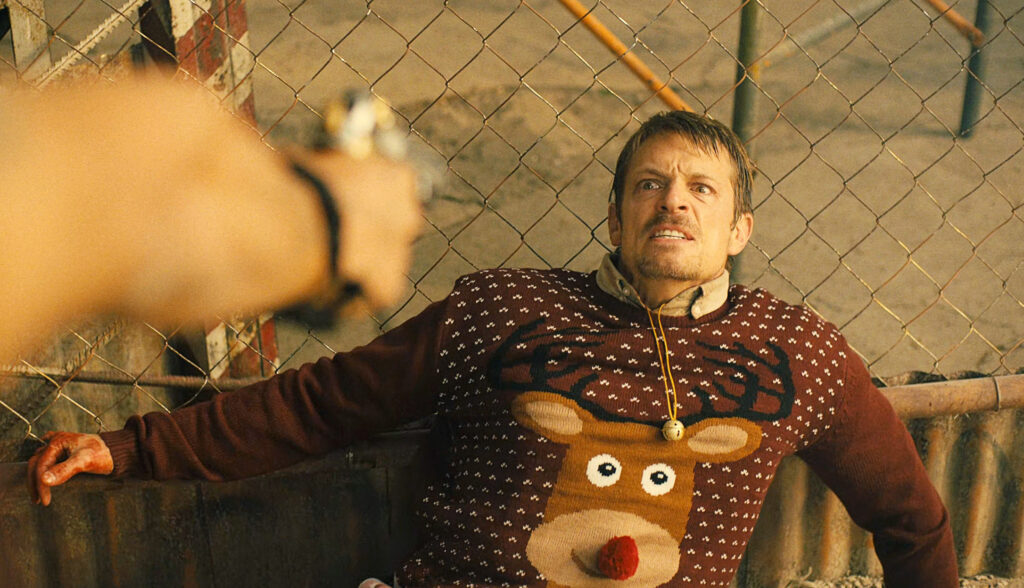 In addition to losing his diegetic son, Joel Kinnaman is shot in the voice box and left for dead in Silent Night’s memorable opening sequence.