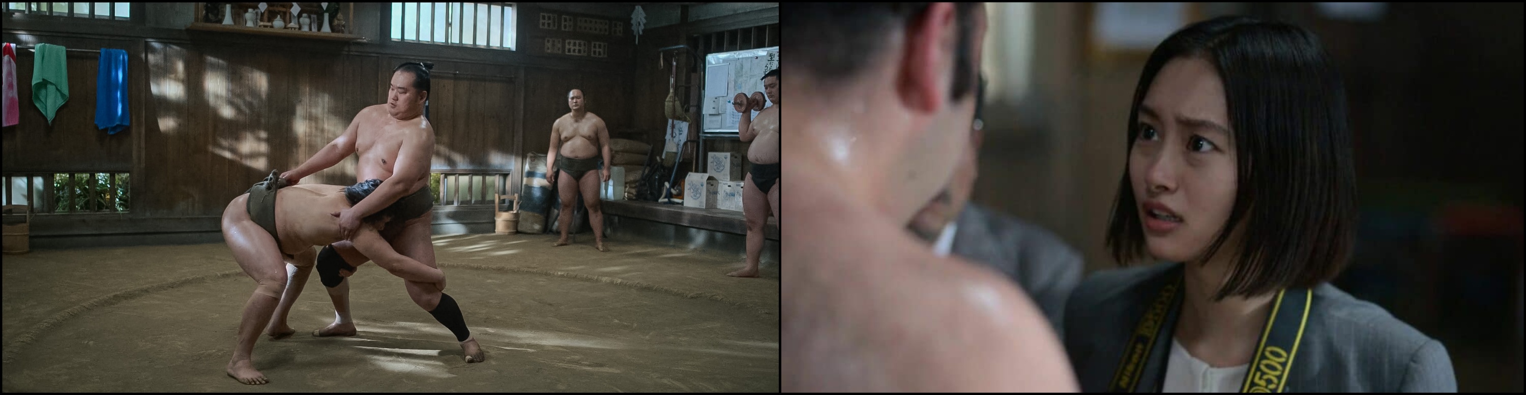 Left: Extensive portions of most episodes of Sanctuary involve main castmembers’ full-contact practice or strength and conditioning training. Right: Secondary lead and outsider Shioli Kutsuna stars as a progressive journalist raised abroad who clashes with sumo’s traditionalist, patriarchal structure.